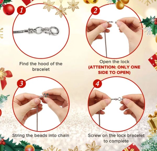 Odlična možnost za dekleta, ki uživajo v izdelovanju lastnega nakita. Ta zapestnica služi kot zanimiva rokodelska dejavnost med zabavami, saj dekletom omogoča, da mešajo in usklajujejo kroglice in obeske ter tako prilagodijo svojo edinstveno modno zapestnico za božič.