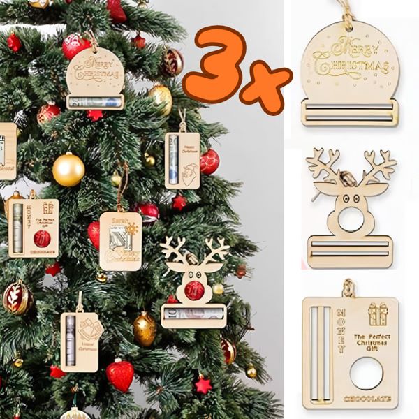 📦 Paket vsebuje: 3x Božični okraski s sponko za denar (vzorci: 1x severni jelen, 1x darilna škatla, 1x kroglica z napisom “”Merry Christmas””)