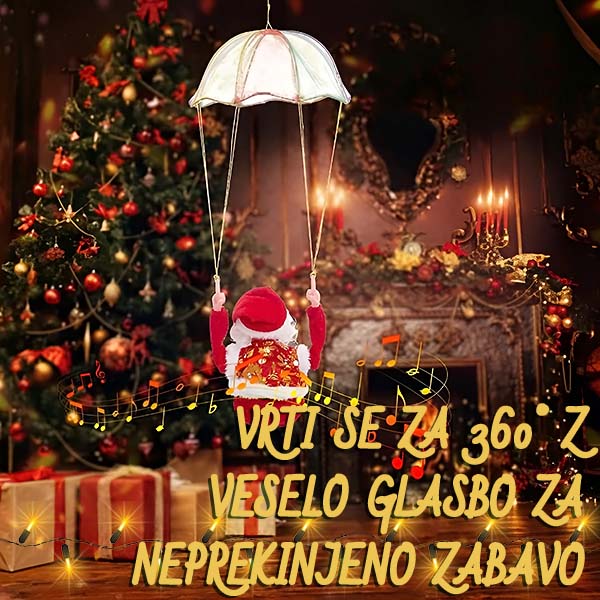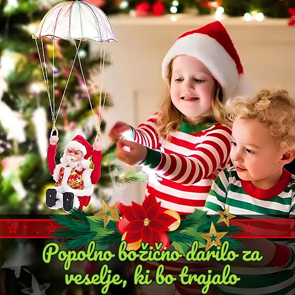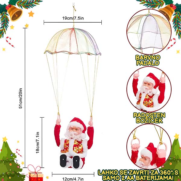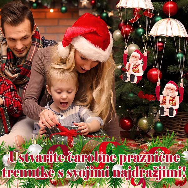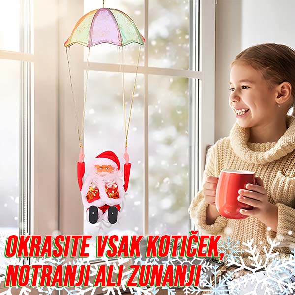 📦 Paket Vključuje: 1x Božiček s Padalom, 1x Kavelj za Obešanje