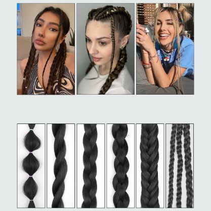 Podaljški za lase BRAIDELLA, izdelani iz vrhunskih toplotno odpornih sintetičnih vlaken, se brez težav povežejo z vašimi naravnimi lasmi in brez težav dosežejo brezhiben videz, ki se ne razlikuje od vašega.