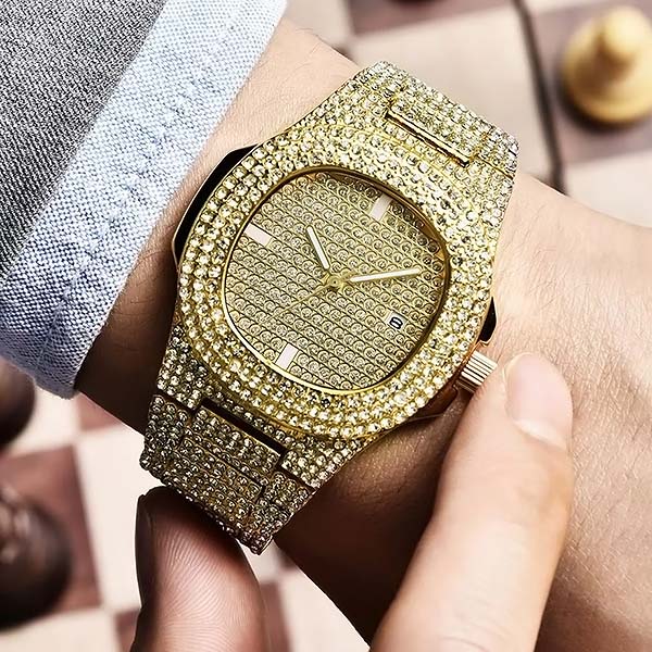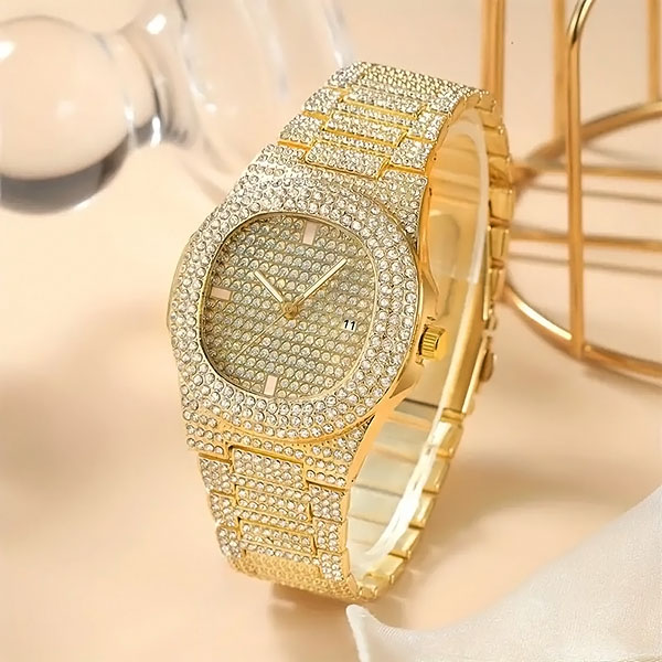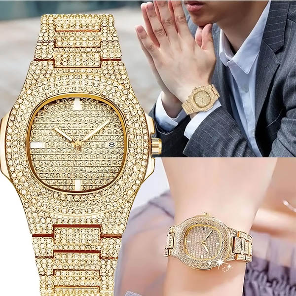 Na tisoče lesketajočih se kristalov spremeni uro v privlačno pozornost. To ni samo ura – je drzen izraz razkošja in elegance.