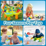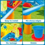 Komplet SANDLANDIA je izdelan iz trpežne plastike in je zasnovan tako, da je odporen na zunanje razmere, kar zagotavlja dolgotrajno zabavo in varno igro na vrtu ali na plaži.