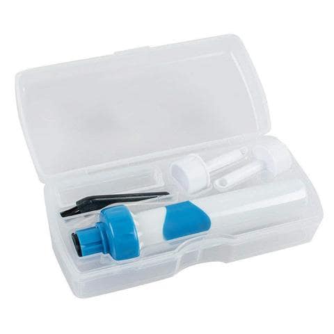 - Pripomoček za vakuumsko odstranjevanje ušesnega masla je izdelan iz plastike brez BPA. Nastavka sta izjemno mehka in uporabljate ju lahko tudi v najbolj ozkih ušesnih kanalih. Nastavka sta primerna za čiščenje ušes tako odraslih kot otrok. Sesalna moč omogoča enostavno odstranjevanje ušesnega masla. Pripomoček omogoča varno čiščenje ušes kjerkoli in kadarkoli.