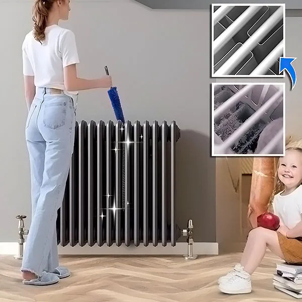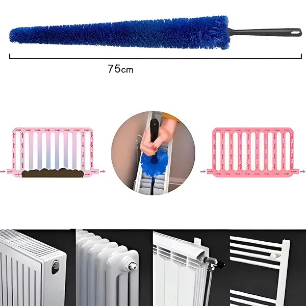 Ni vam treba odstraniti pokrovov radiatorjev. DUSTOFF je bil ustvarjen posebej za čiščenje radiatorjev. Njegov elektrostatični naboj privlači prah in umazanijo, zaradi česar je popoln za panelne, stebričaste, krilne, lestvene in brisačne radiatorje.