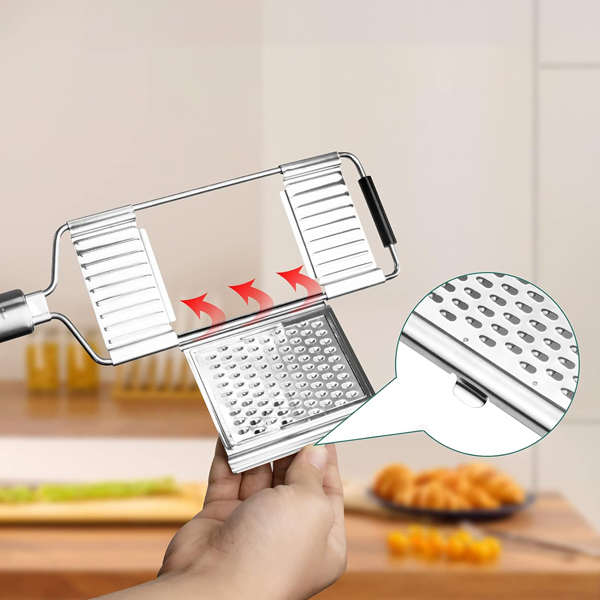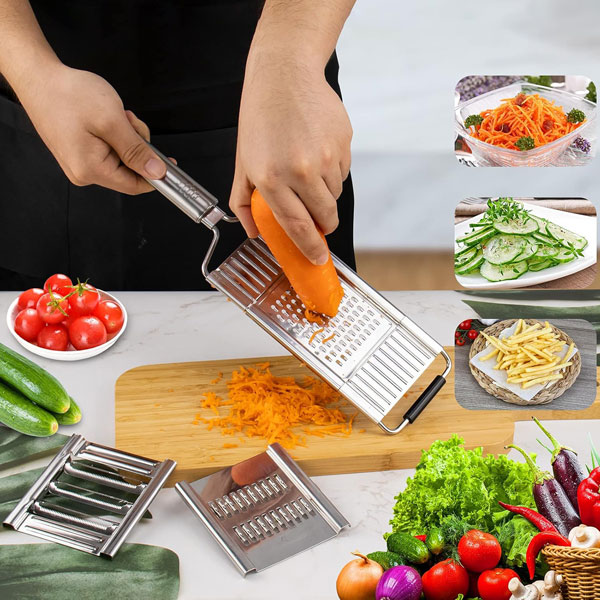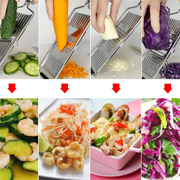 🧑🍳 Večnamenska zasnova: Režite, ribajte in sekljajte z enim orodjem—idealno za solate, pomfrit in hitre obroke.